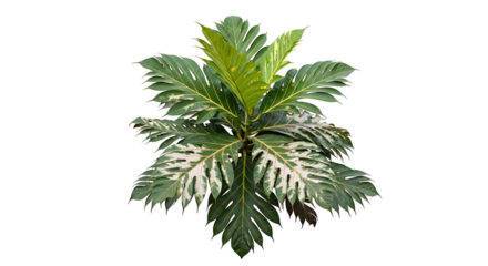Lush Green Breadfruit Plant with Broad Leaves Isolated on White Background.