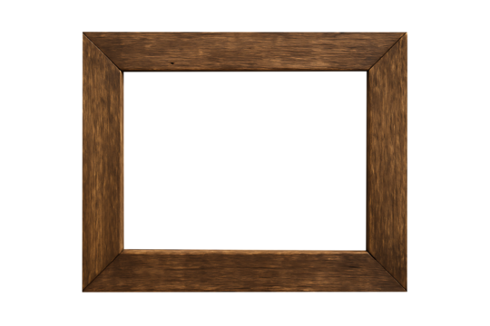 Empty rustic dark wooden picture frame with rough texture and visible wood grain for photos or artwork display isolated on transparent background