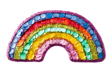 Vibrant Rainbow Sequin Applique on Transparent Background, PNG