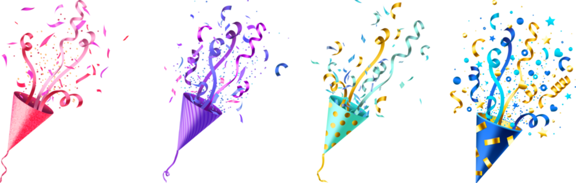 Set Of Confetti Popper for Event Designs confetti party popper icon, fireworks logo, cap, flat design isolated on white background arty poppers with perfect for celebrations and festive occasions