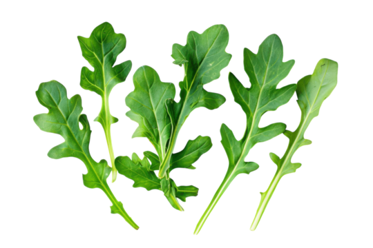 Fresh arugula leaves displayed artistically against a clean background, celebrating seasonal greens for wellness and culinary delights isolated on transparent background