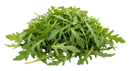 Fresh arugula leaves isolated on transparent background.