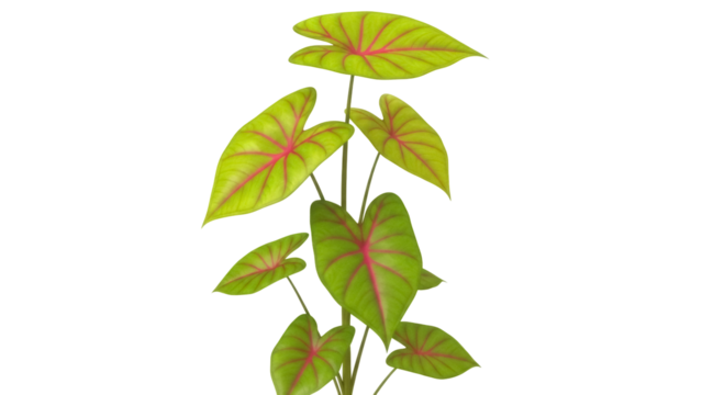 Isolated colorful Caladium plant, tropical botanical garden flower, vibrant summer flora