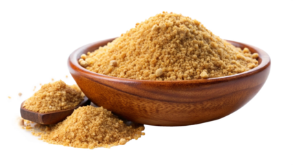 Asafetida Powder in wooden bowl on a White or Clear Surface PNG Transparent Background