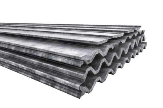 A Stack Of Sturdy Grey Corrugated Roofing Sheets Ready For A New Construction Project, Showcasing A Textured Surface And Sharp Angles Against A Clean Isolated on Transparent Background