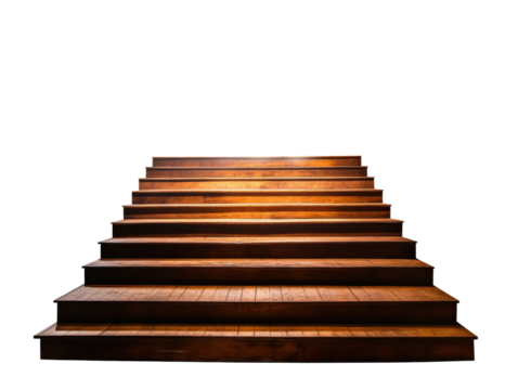 Ascending wooden stairs: A set of well-crafted wooden stairs rises, suggesting a path of growth and advancement, against a clean backdrop.