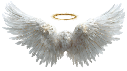 Beautiful white feathered angel wings symbolize grace, purity, and spiritual ascension, creating a sense of freedom and divine presence