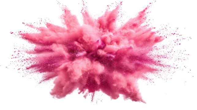 Colorful pink holi paint color powder on transparent background