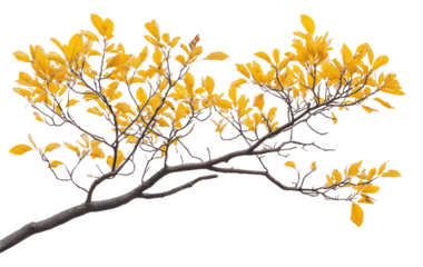 Yellow leaf illustration on transparent background for autumn design