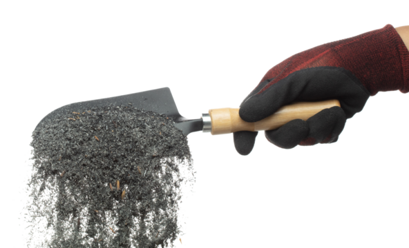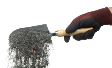 Pile of dark granular material isolated on transparent background