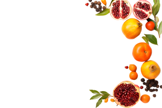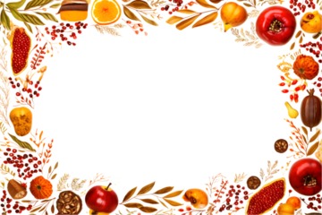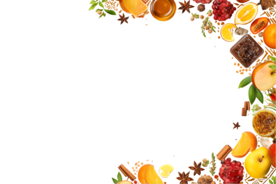 Rosh hashanah concept. Frame made of symbols jewish New Year holiday Traditional. generative ai.