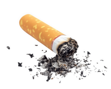 crushed cigarette butt with scattered ashes, symbolizing waste and pollution. remnants highlight environmental impact of smoking