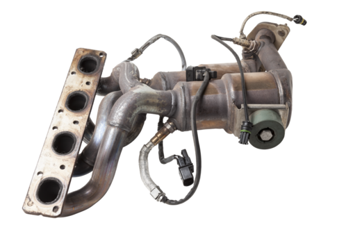 Automotive catalyst removed from a vehicle for repair with a ceramic coating inside as part of an exhaust system to remove harmful emissions in a car repair shop