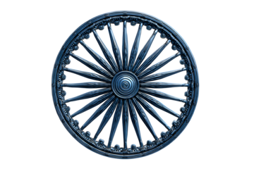 Glossy render of Ashoka Chakra in navy blue showcasing detailed design