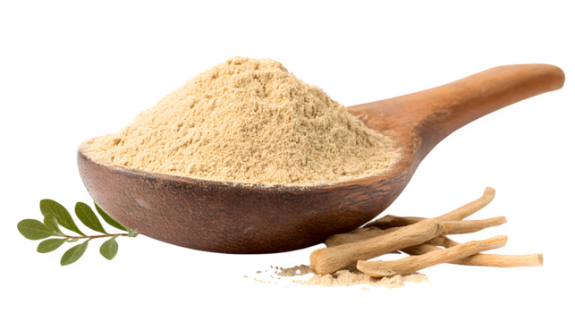 Ashwagandha powder benefits herbal remedies home natural isolated on transparent background