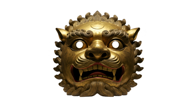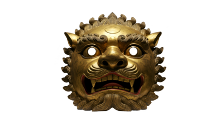 Photo Golden Lion Mask Detailed Traditional Asian Art