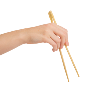 Hand holding wooden chopsticks, Chinese food sticks isolated on white background png