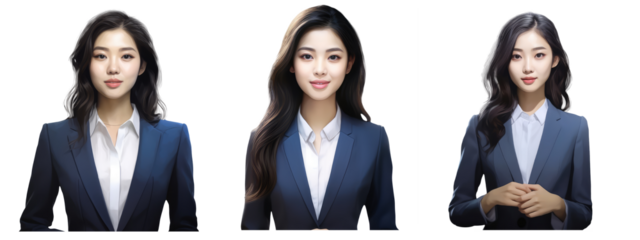 Asian businesswoman in office attire on transparent background