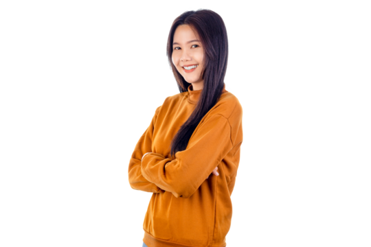 Happy Smiling Young Asian girl standing with her arms crossed.