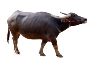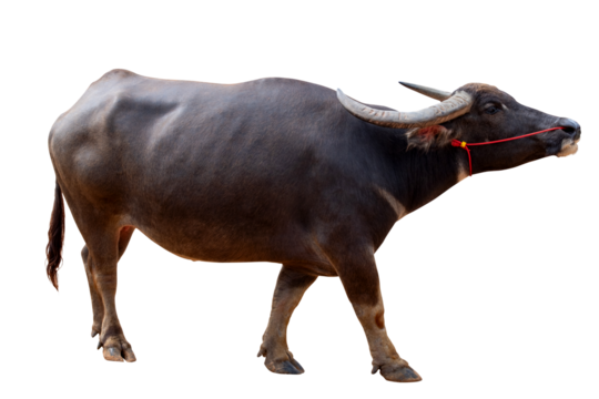 Full body standing of Thai Black Buffalo isolated on transparent bakcground, PNG File fomate