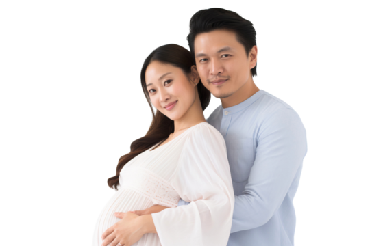 Happy family couple expecting baby, pregnancy concept, isolated on transparent background