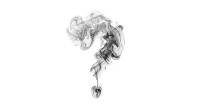 Smoke forming a question mark symbol conceptualizing doubt, mystery, and confusion on a transparent background