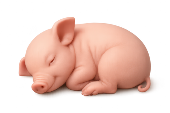 Adorable pink baby piglet peacefully sleeping on transparent background