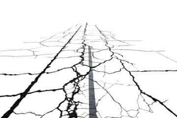 cracked roads on isolated white background, PNG