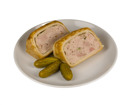deux tranches de pâté en croûte sur assiette isolé