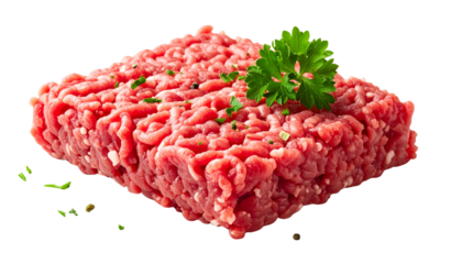 Fresh minced meat topped with green parsley, isolated on white background for culinary presentations and recipe inspirations isolated on solid white background