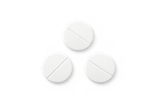 White pills representing health, medicine, and wellness, providing relief for symptoms, on a transparent background
