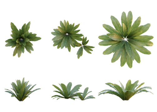 isolated cutout foreground forest plant name asplenium nidus in 3 different model option,front view and top view, best use for landscape design.