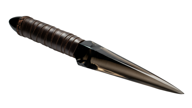 Dark Metal Dagger with Brown Leather Wrapped Handle Product Shot isolated on Transparent Background