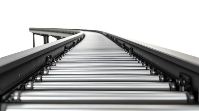 Industrial conveyor belt isolated on transparent background, PNG file, clean and detailed