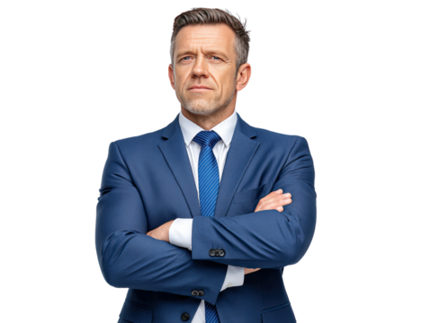 A Asian businessman stands elegantly with his arms crossed on PNG background