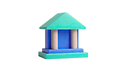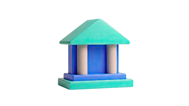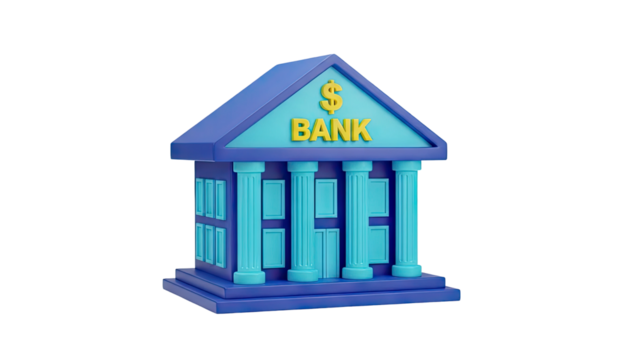 3D Rendering of Bank Building, Coins, and Calculator on transparent background