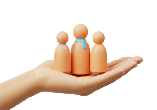 Isolated green hand holding stylized user icons, people, staff, service, care, teamwork