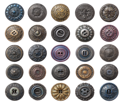 Collection of decorative vintage buttons.  Various shapes, sizes, and detailed designs