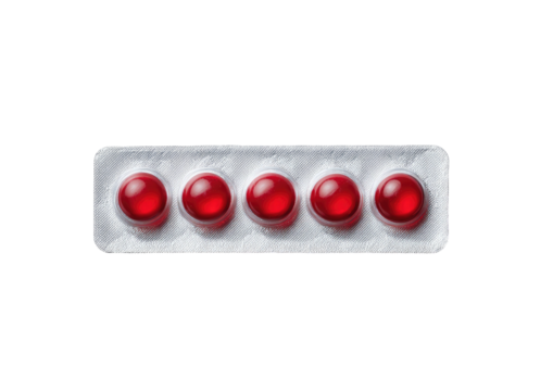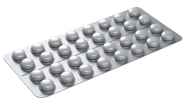 Isolated blister pack of pills, medicine tablet split in two, prescription pharmaceutical item