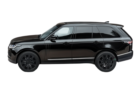 Luxury SUV in sleek black finish, showcased against a transparent background, highlighting modern design and spaciousness perfect for family travel