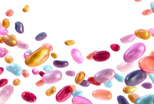 Assorted Colorful Jelly Beans Candy Falling Isolated on Transparent Background Ready for Your Creative Ideas