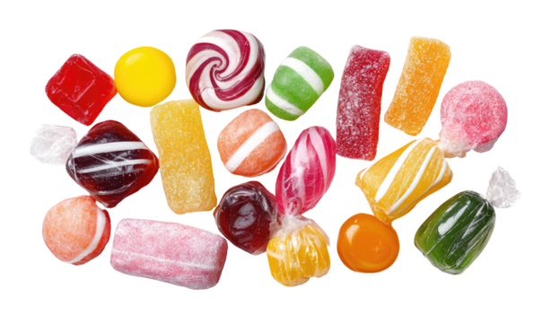 A vibrant collection of colorful candies and sweets displayed in glass jars, evoking joy and indulgence.