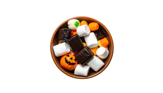 Assorted sweets on ceramic plate with transparent background