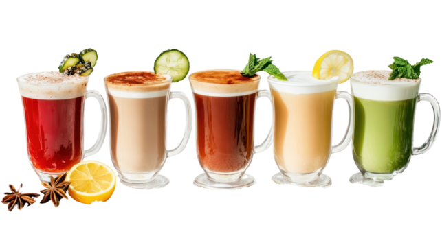 assorted delicious yogurt bowls adorned with fresh berries and granola isolated on transparent