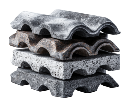 Stacked concrete tiles urban site materials with quality assurance isolated on transparent background