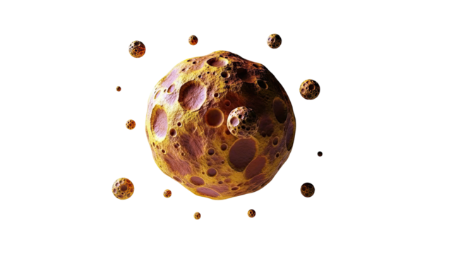 Detailed asteroid surface with craters PNG isolated on transparent background, celestial body for space exploration and science projects