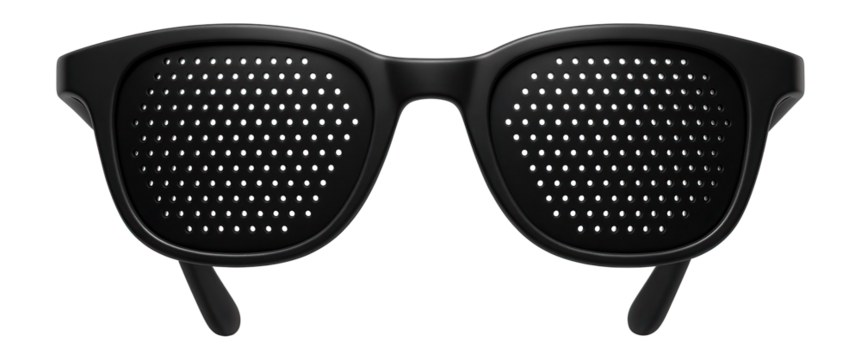 Black plastic pinhole vision-training glasses with evenly spaced perforations