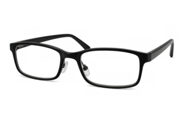 Black eyeglasses resting on clean surface, highlighting modern design for corrective eyewear