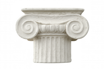 Transparent background architectural detail of an ionic order column capital with volutes, ideal for seamless integration into designs