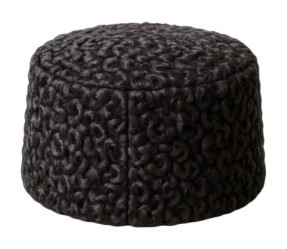 Traditional black Karakul hat made from curly Astrakhan fur. An authentic men's Papakha cap headwear. Isolated on Transparent and White Background